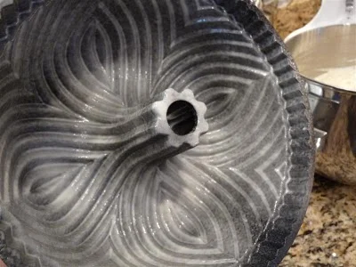 I sprayed this bundt pan well with Baker's Joy, which enabled the finished cake to release from the pan perfectly.