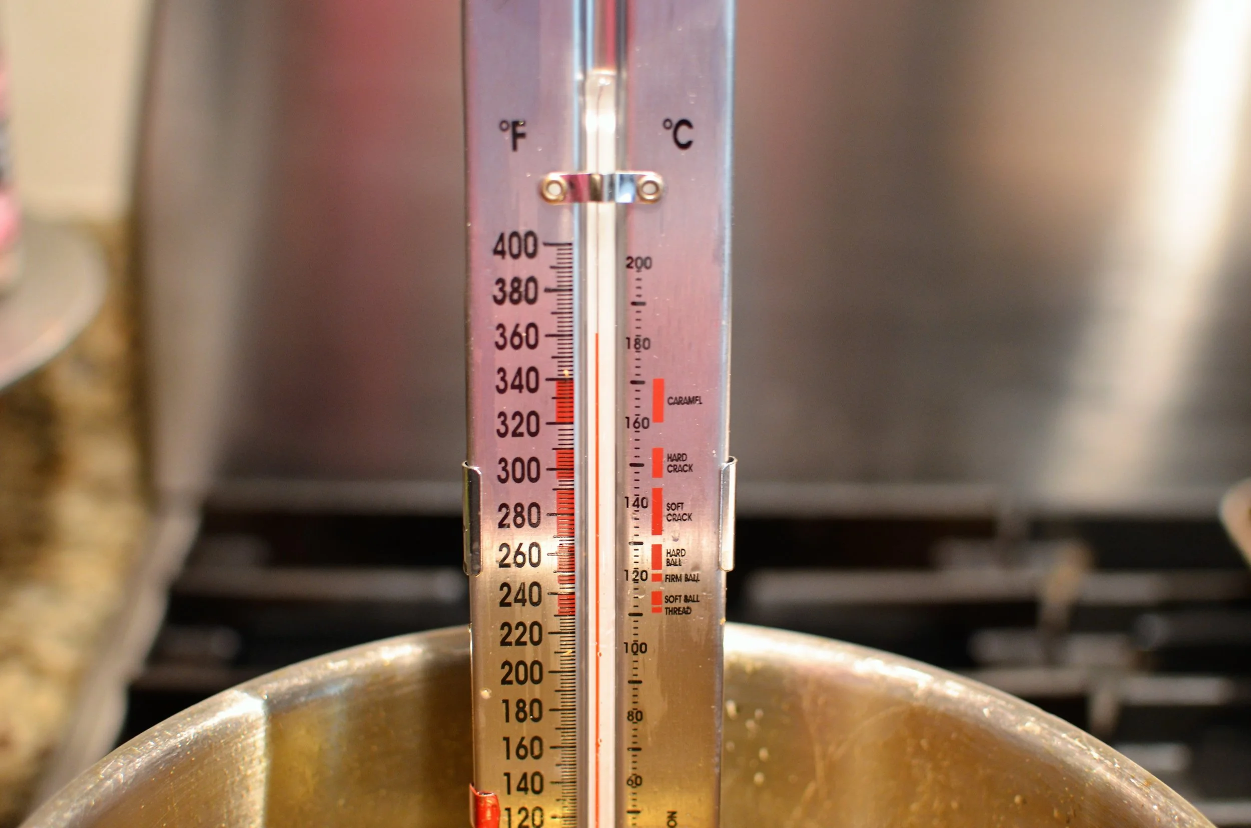 CAREFULLY place the dough-wrapped cannoli forms in the oil and cook until brown and bubbly, being careful not to crowd the pan. Watch the oil temp - it shouldn't fall below 350F.