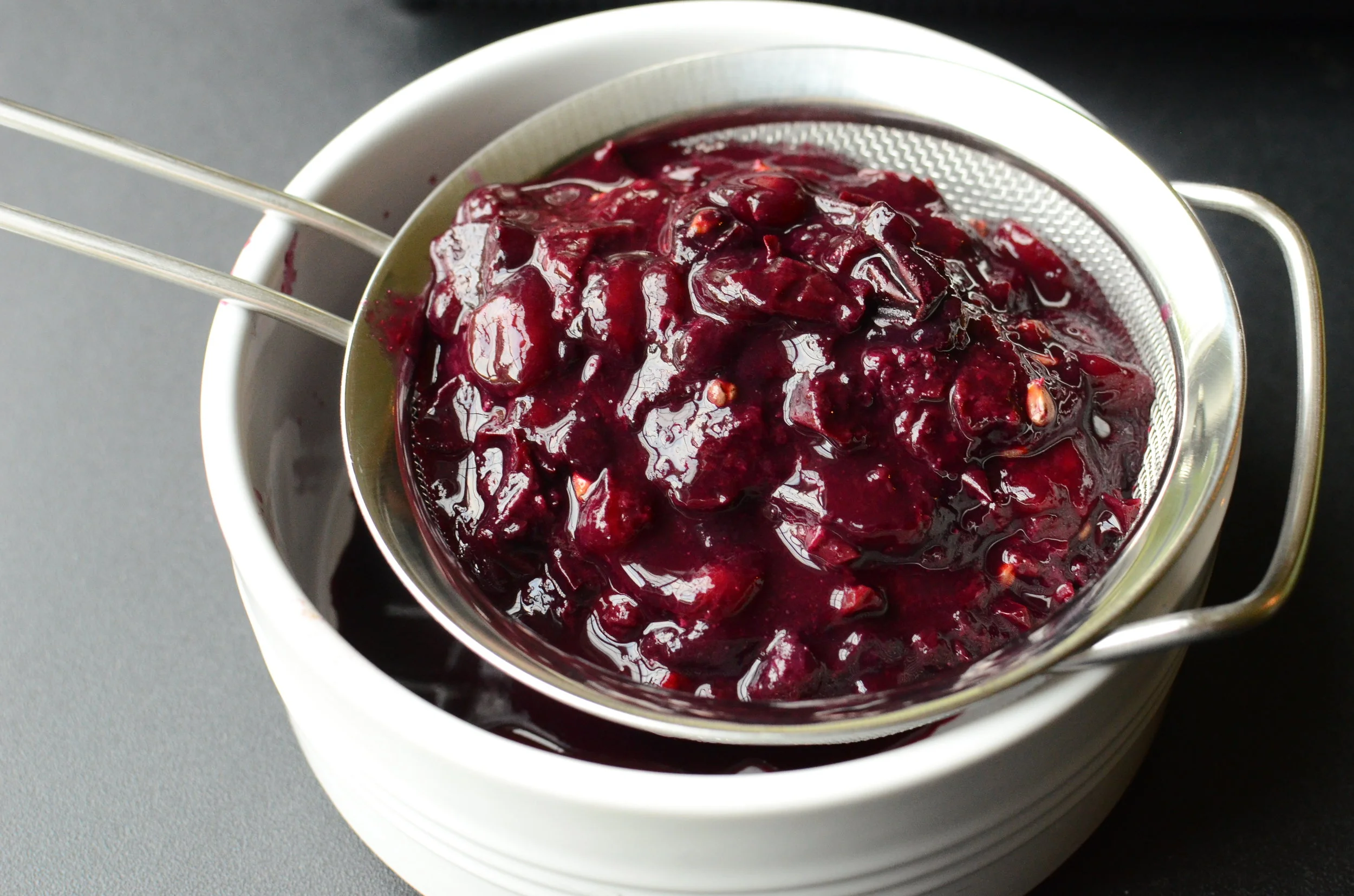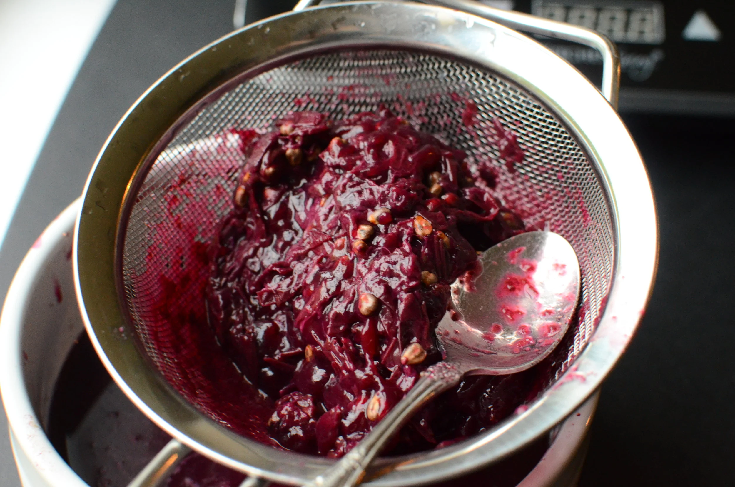 - Remove from heat and strain grape seeds and skins from the liquid; cool completely.